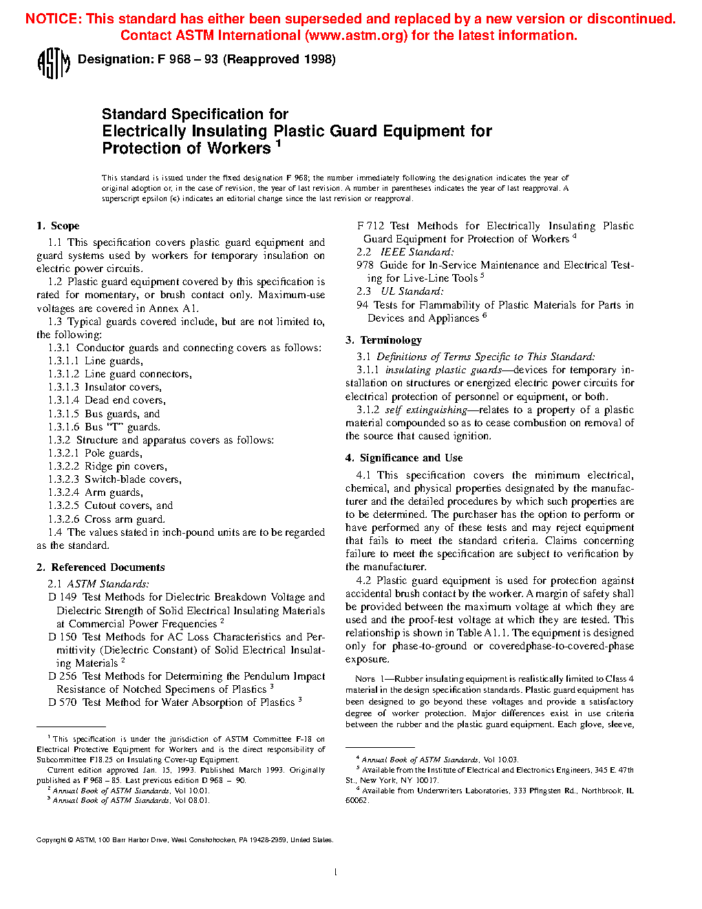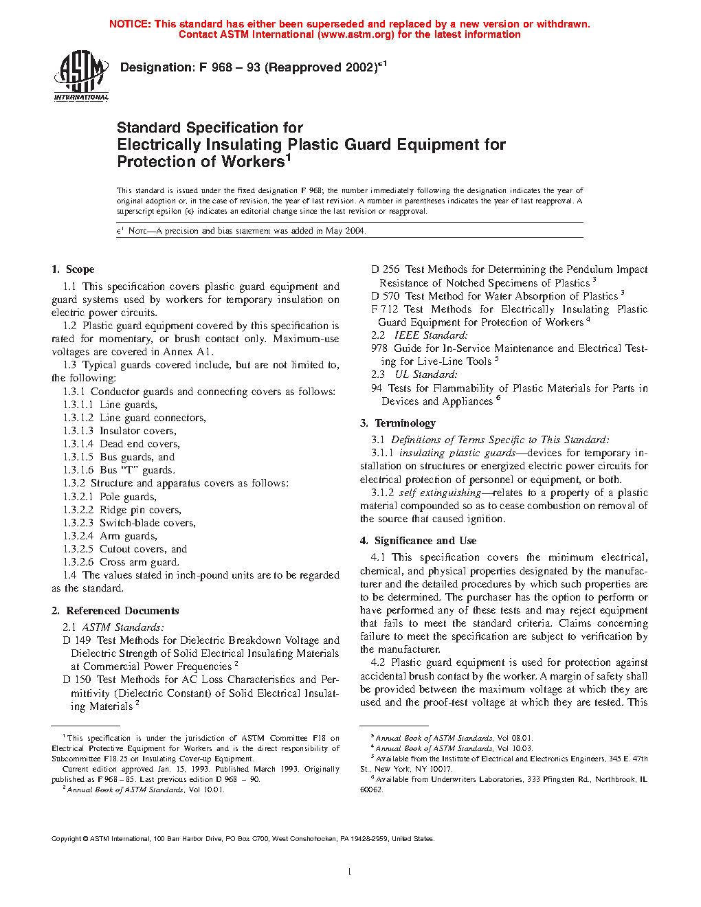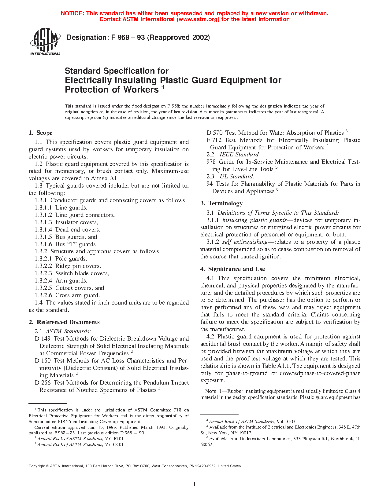 1.1 This specification covers plastic guard equipment and guard systems used by workers for temporary insulation on electric power circuits.