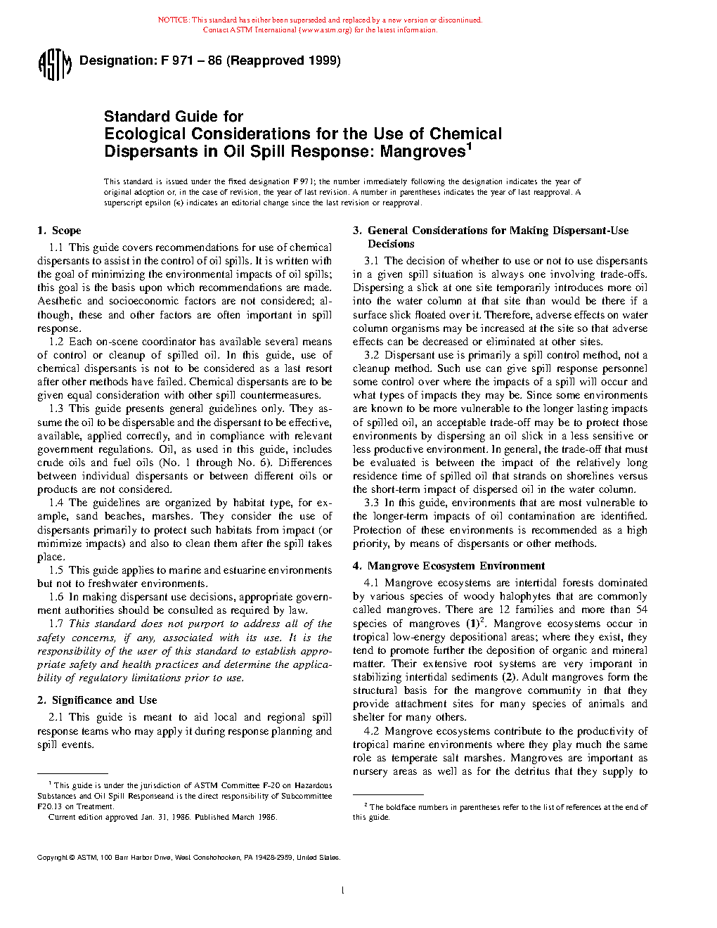 1.3 This guide presents general guidelines only. They assume the oil to be dispersable and the dispersant to be effective, available, applied correctly, and in compliance with relevant government regulations. Oil, as used in this guide, includes crude oils and fuel oils (No. 1 through No. 6). Differences between individual dispersants or between different oils or products are not considered.