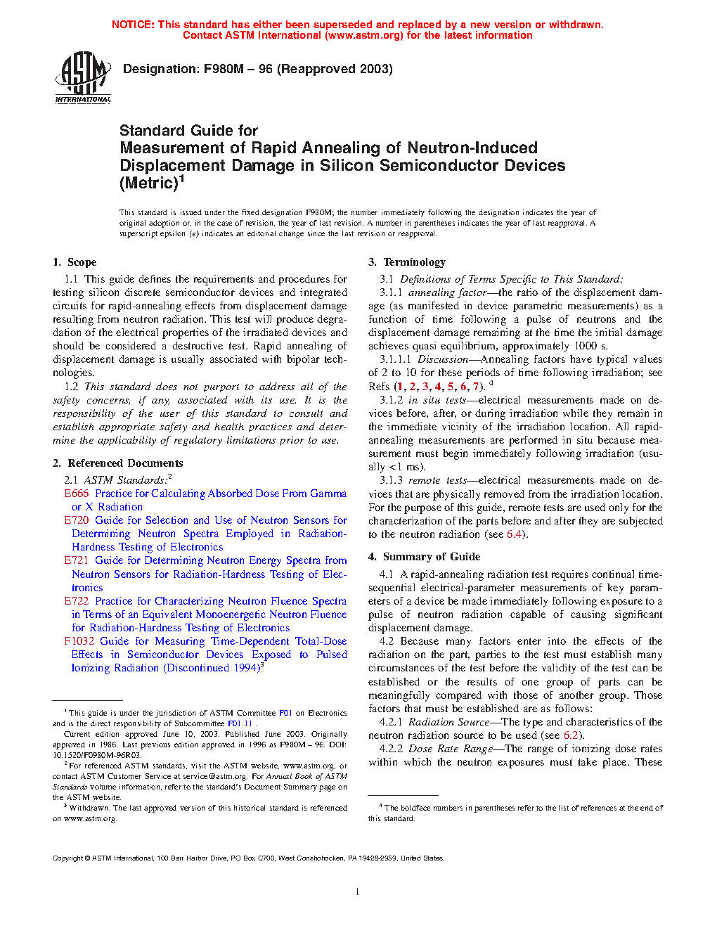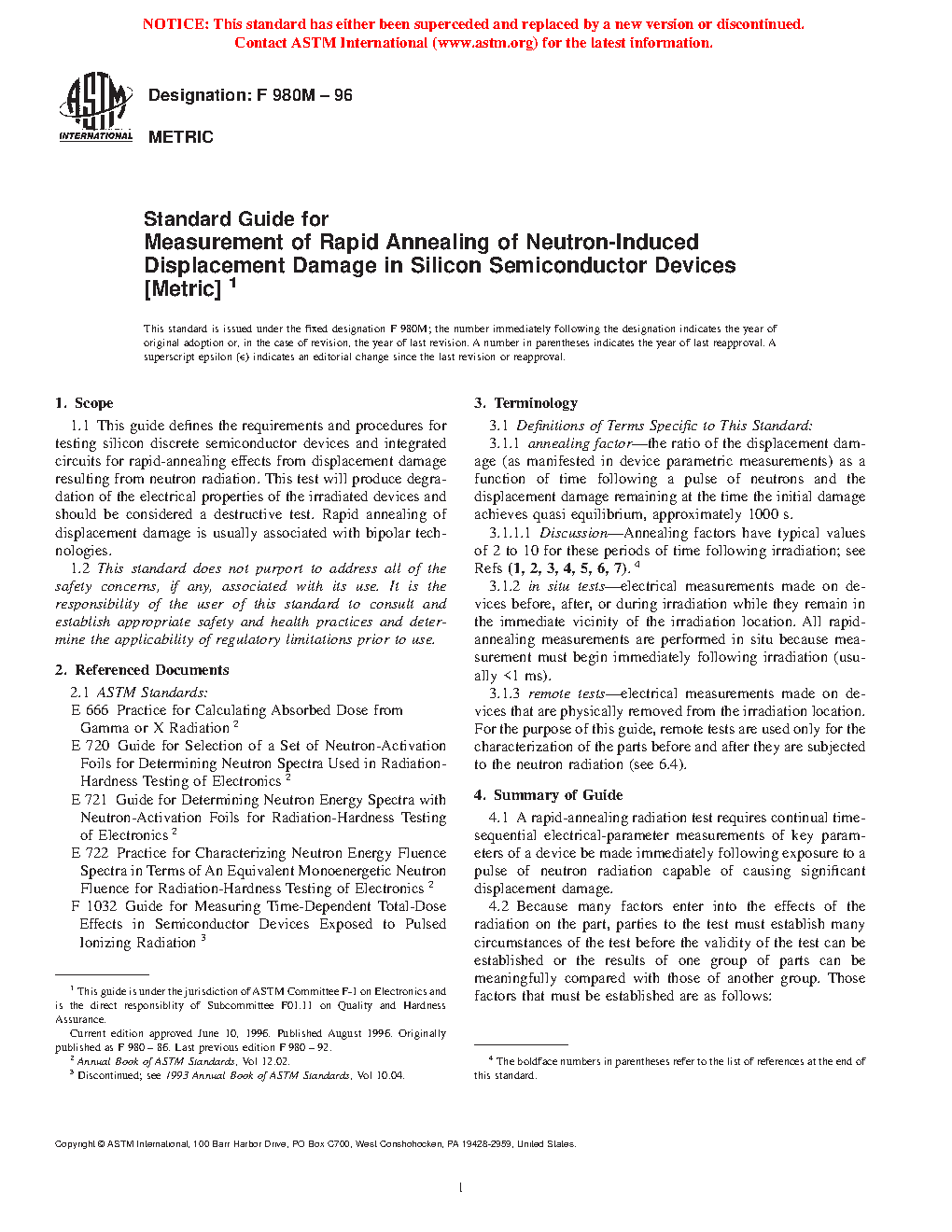 ASTM F980M-96(2003) (R1996)
