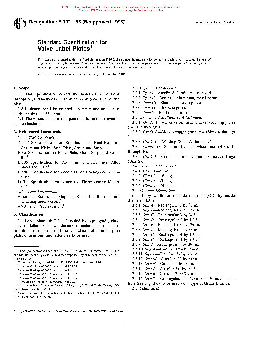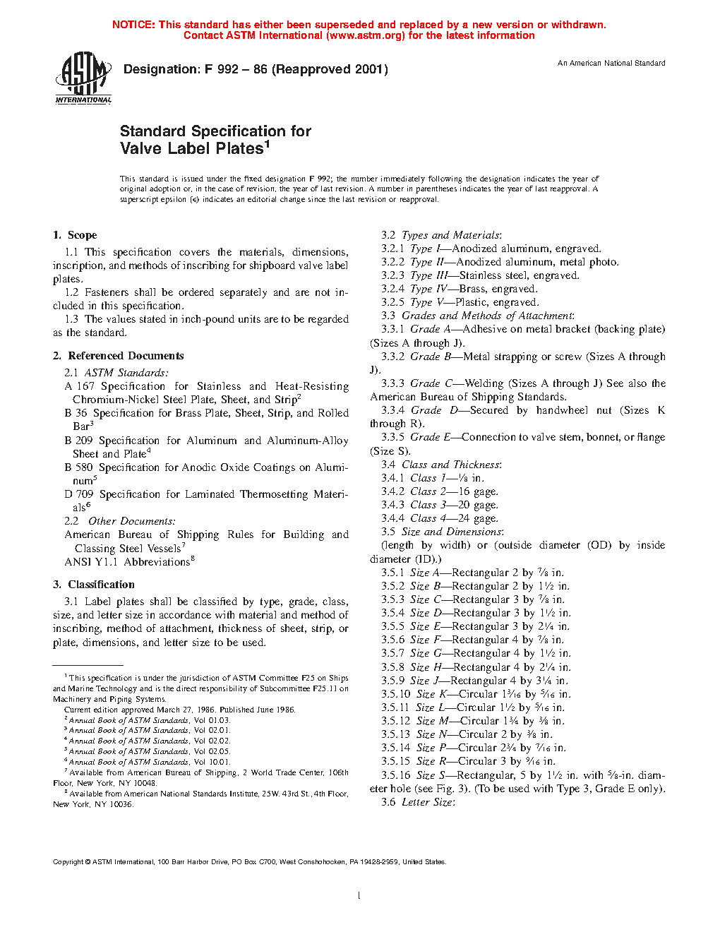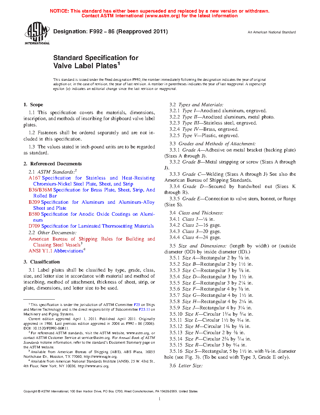 1.1 This specification covers the materials, dimensions, inscription, and methods of inscribing for shipboard valve label plates.
