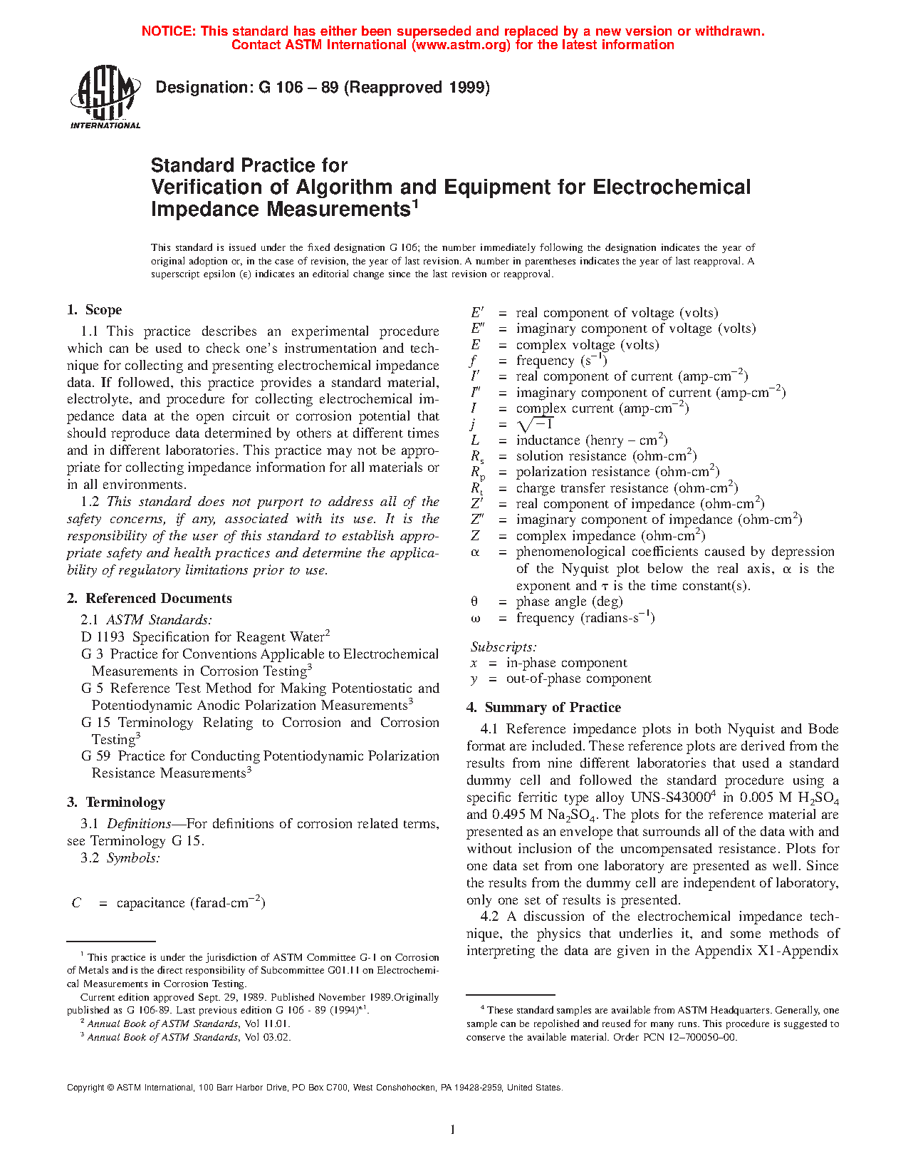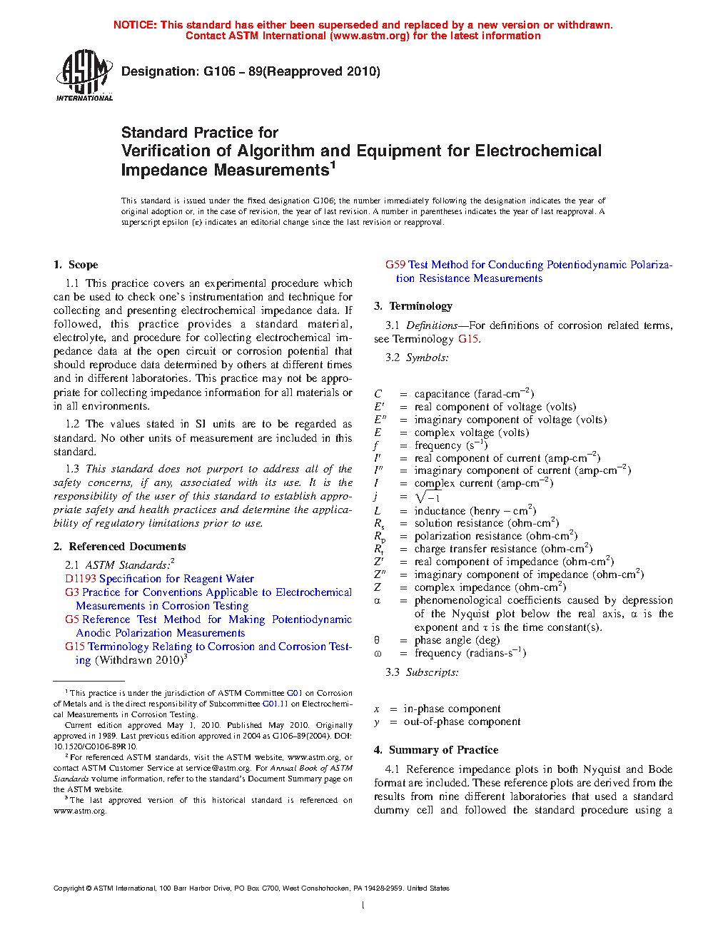 This test method may not be appropriate for electrochemical impedance measurements of all materials or in all environments.