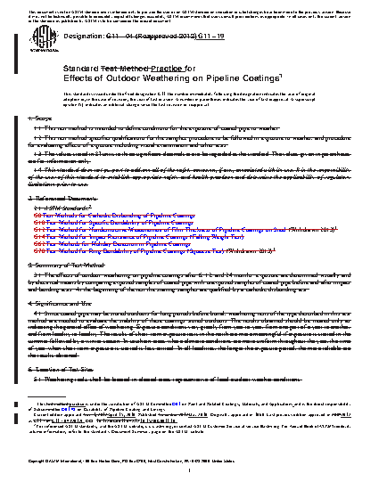 4.1 Since coated pipe may be stored outdoors for long periods before burial, weathering tests described in this practice are needed to evaluate the stability of these coatings stored outdoors. The results obtained should be treated only as indicating the general effect of weathering. Exposure conditions vary greatly from year to year, from one part of a year to another, and from locality to locality. The results of short-term exposure tests in the north are more meaningful if exposure is started in the summer followed by a winter season. In southern areas where climatic conditions are more uniform throughout the year, the time of year when short-term exposure is started is less critical. In all localities, the longer the exposure period, the more reliable are the results obtained.