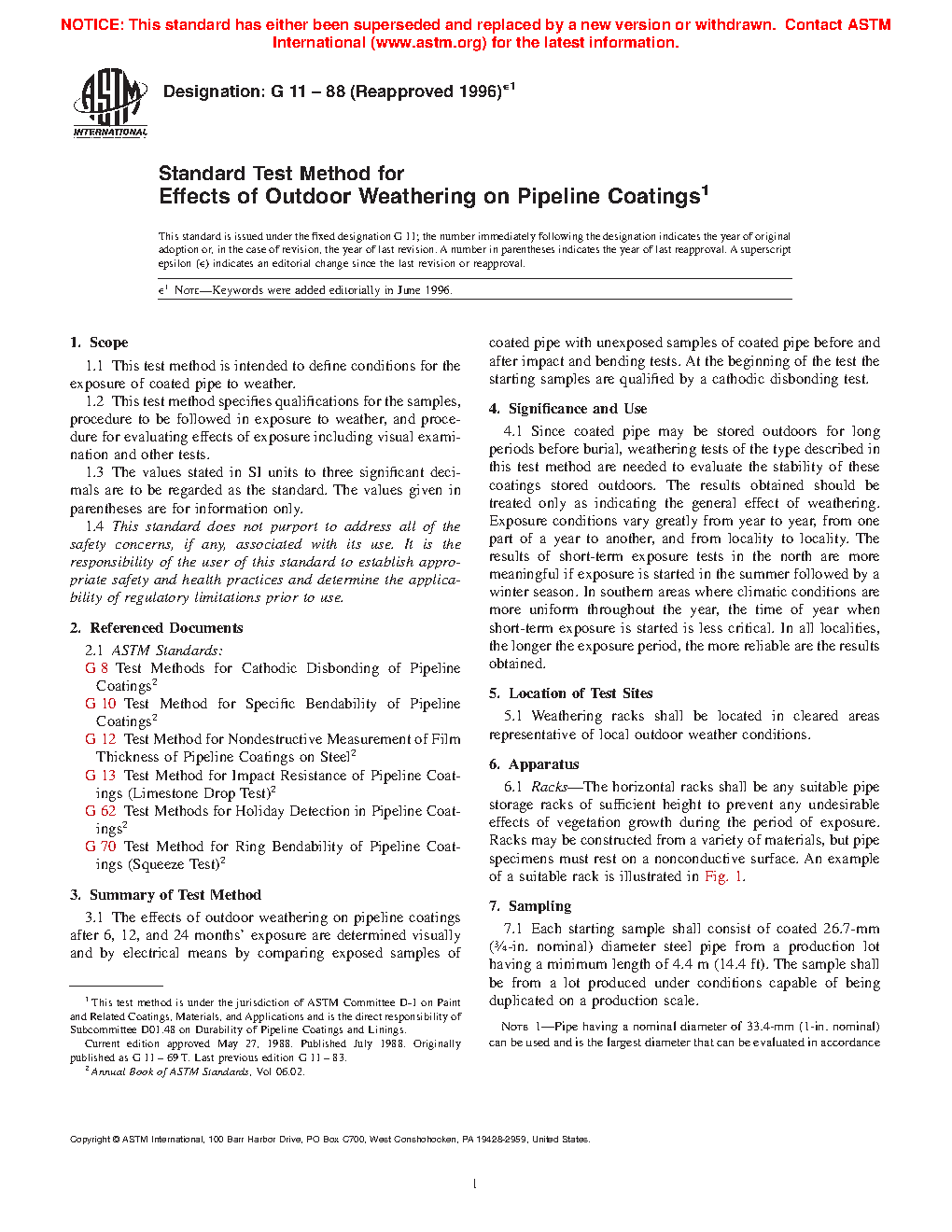1.1 This practice is intended to define conditions for the exposure of coated metal pipe to weather.