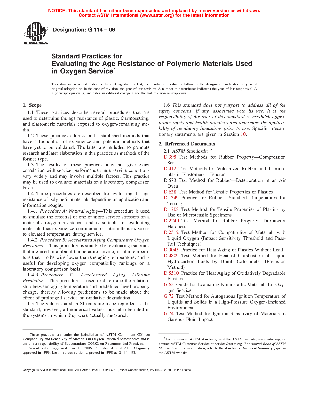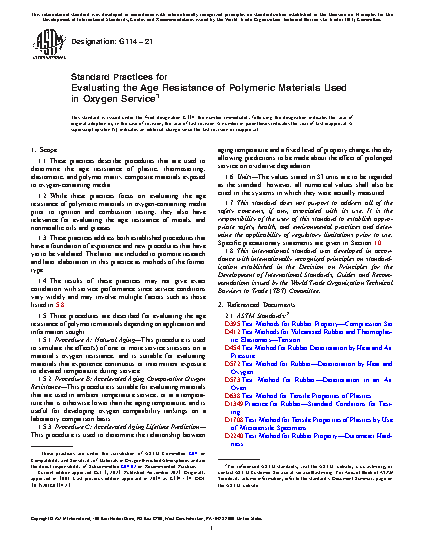 1.2 While these practices focus on evaluating the age resistance of polymeric materials in oxygen-containing media prior to ignition and combustion testing, they also have relevance for evaluating the age resistance of metals, and nonmetallic oils and greases.