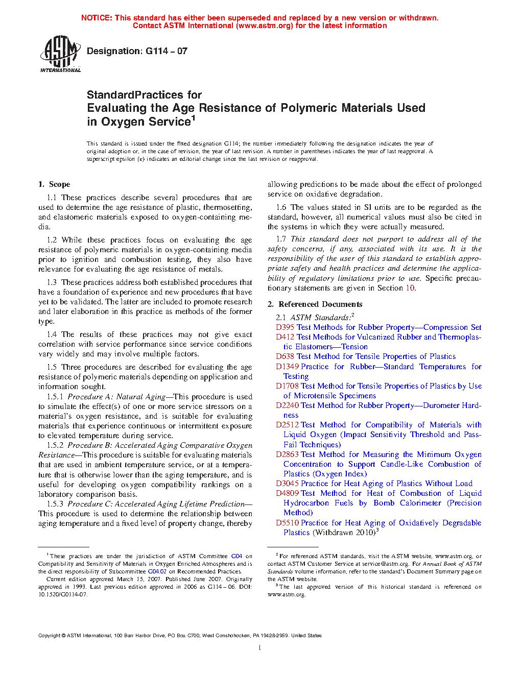 1.5 Three procedures are described for evaluating the age resistance of polymeric materials depending on application and information sought.