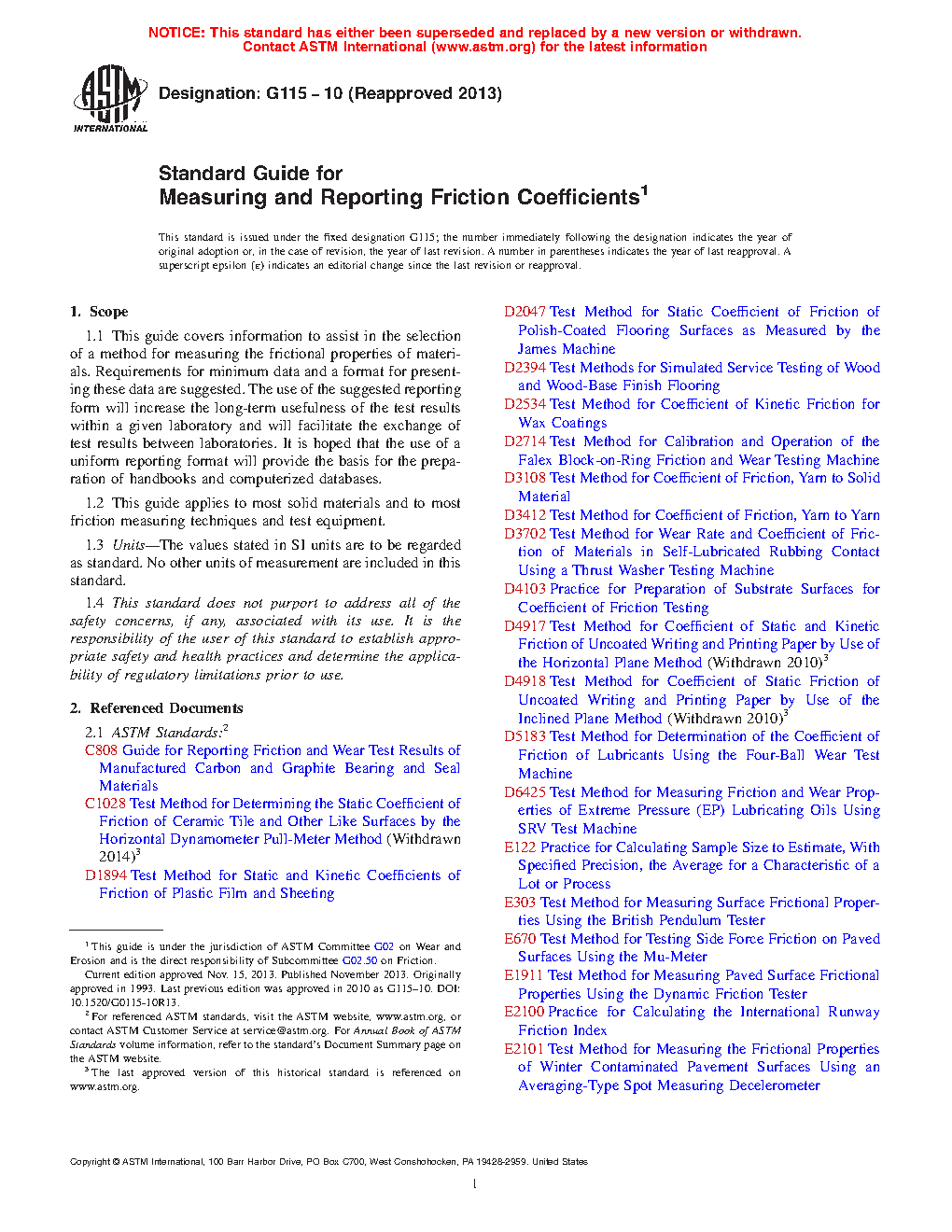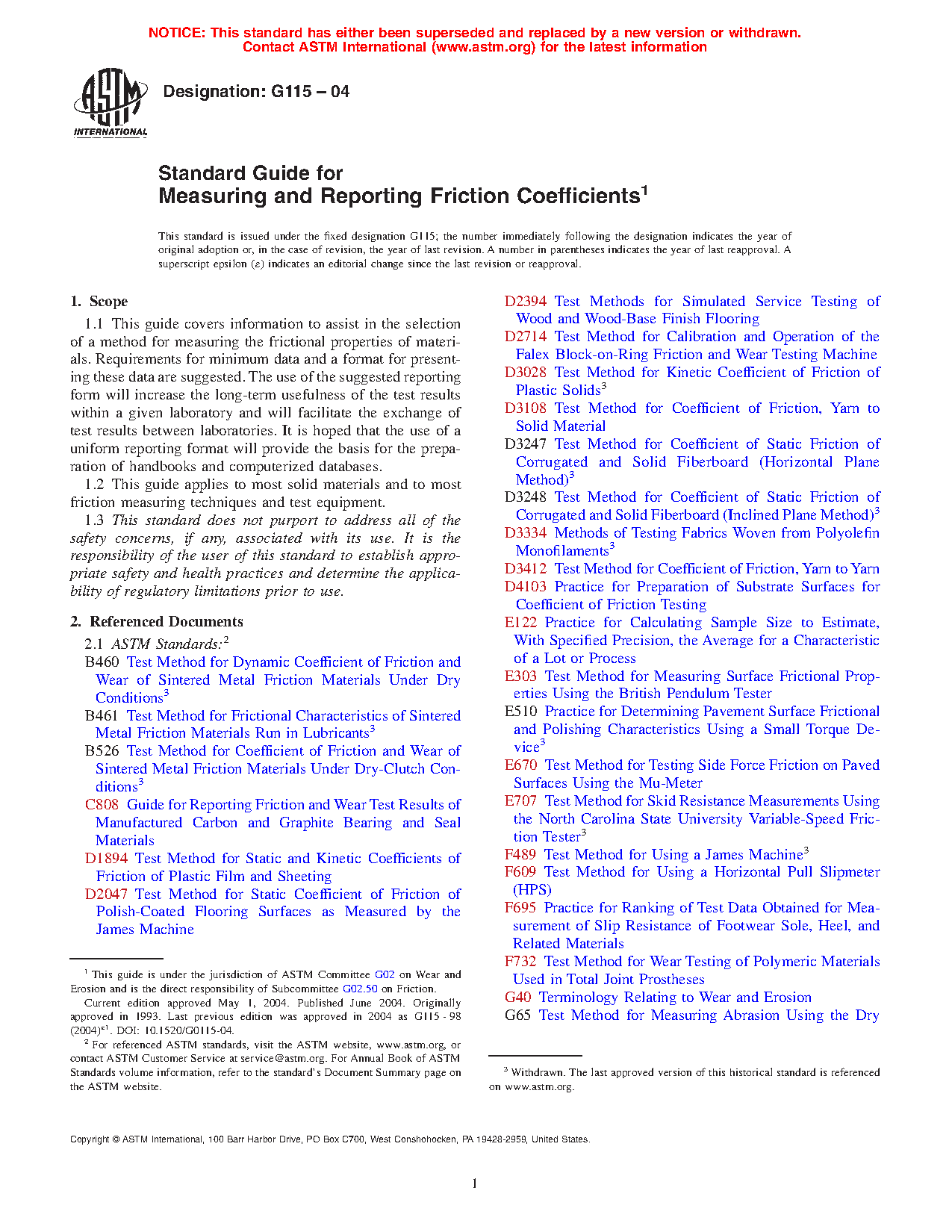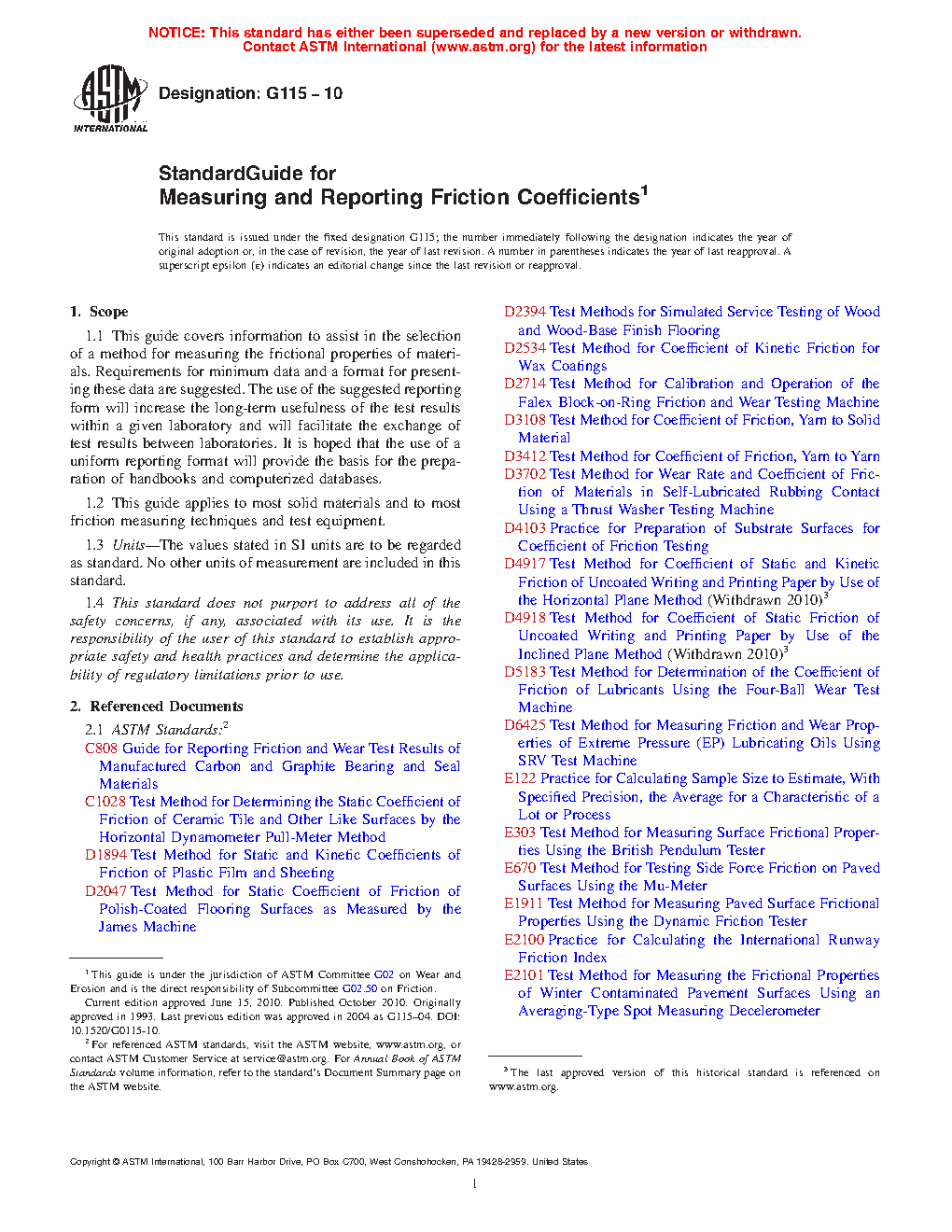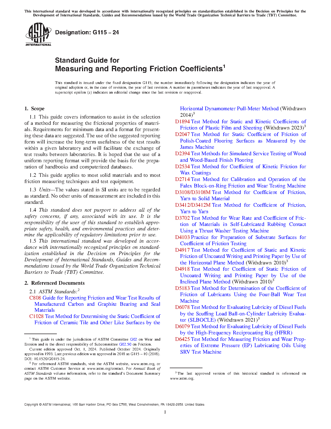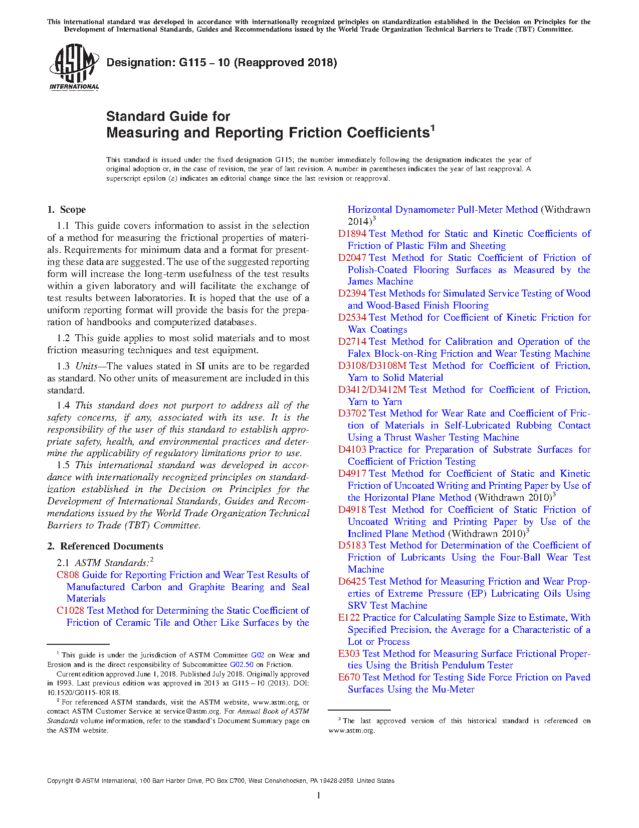 1.1 This guide covers information to assist in the selection of a method for measuring the frictional properties of materials. Requirements for minimum data and a format for presenting these data are suggested. The use of the suggested reporting form will increase the long-term usefulness of the test results within a given laboratory and will facilitate the exchange of test results between laboratories. It is hoped that the use of a uniform reporting format will provide the basis for the preparation of handbooks and computerized databases.