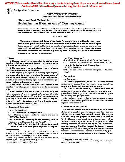 5.1 The purpose of this test method is to define a procedure for evaluating the capability of cleaning agents to clean metallic coupons. Based on the outcome of the testing, suitable cleaning agents may be selected for cleaning in general and for oxygen service in particular.