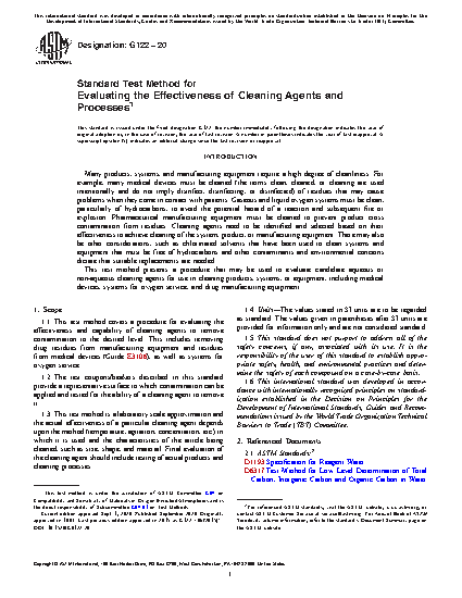 5.2 The cleaning parameters can be changed and the test method can be repeated. The usual cleaning parameters include cleaning agent concentration, temperature, and time; type and strength of ultrasonic energy or agitation, if used, and others.
