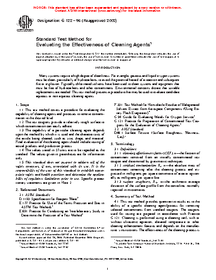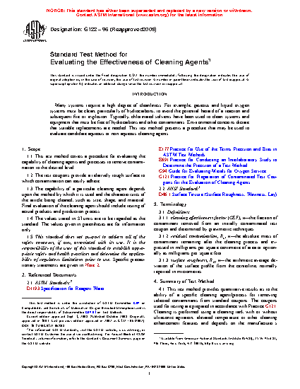 1.1 This test method covers a procedure for evaluating the capability of cleaning agents and processes to remove contamination to the desired level.