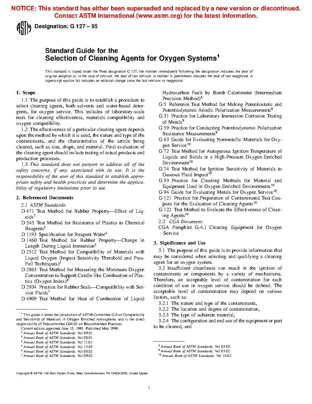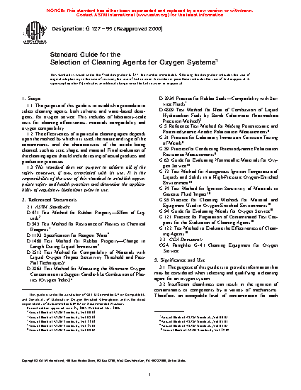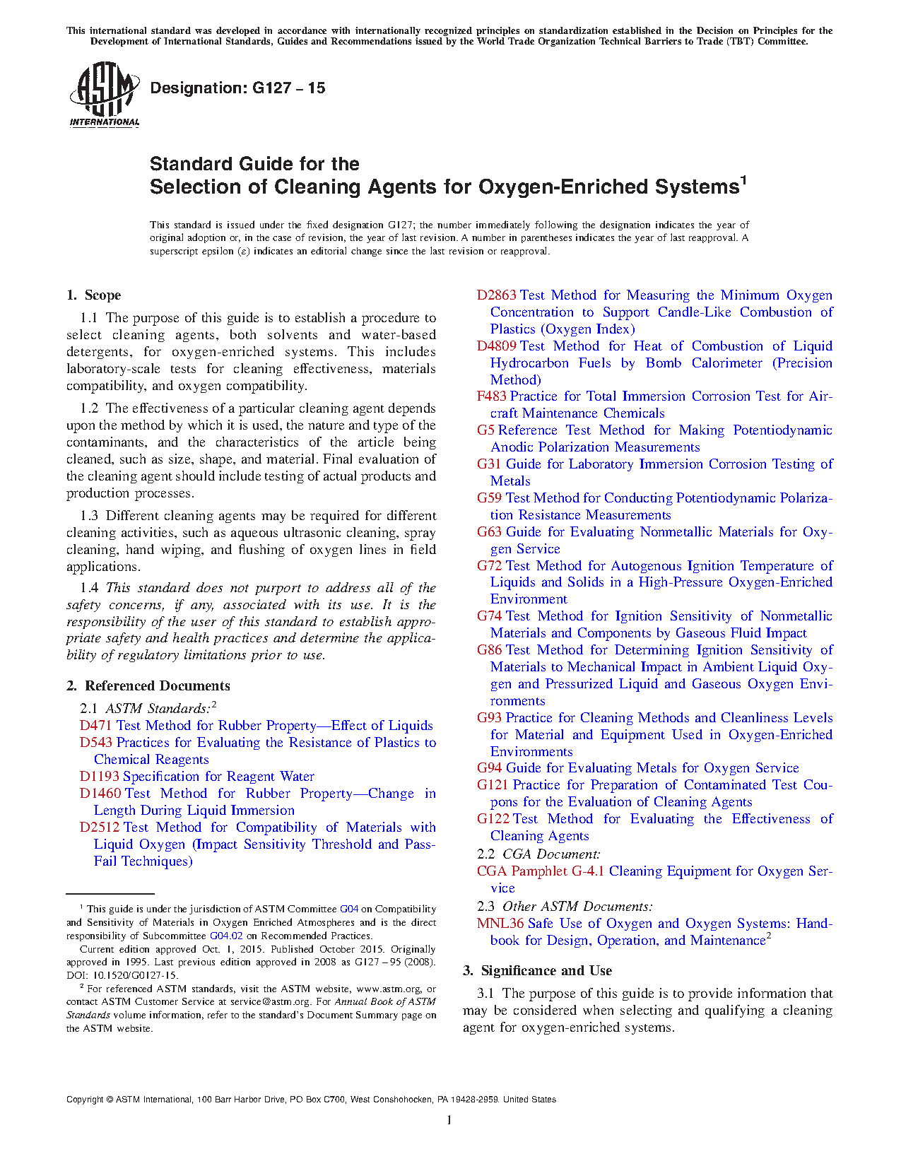 3.1 The purpose of this guide is to provide information that may be considered when selecting and qualifying a cleaning agent for oxygen-enriched systems.