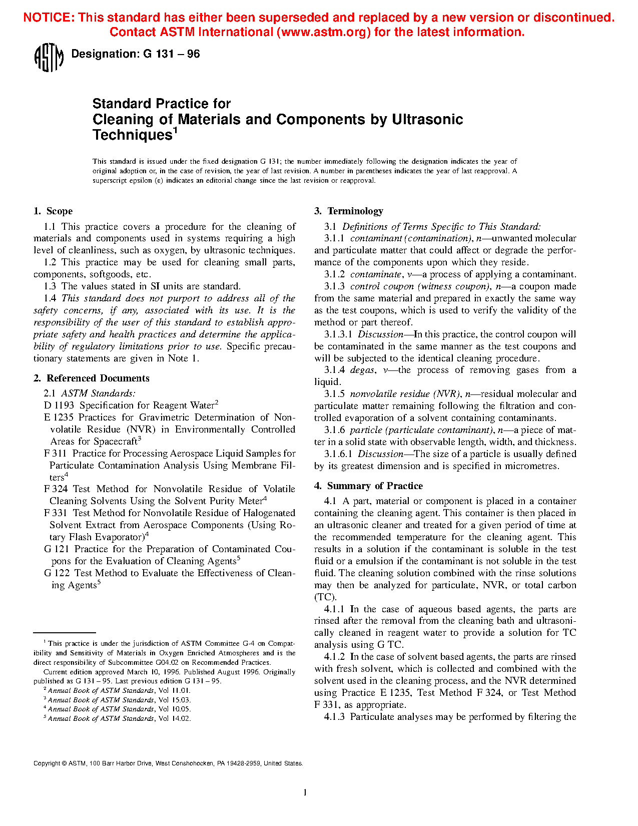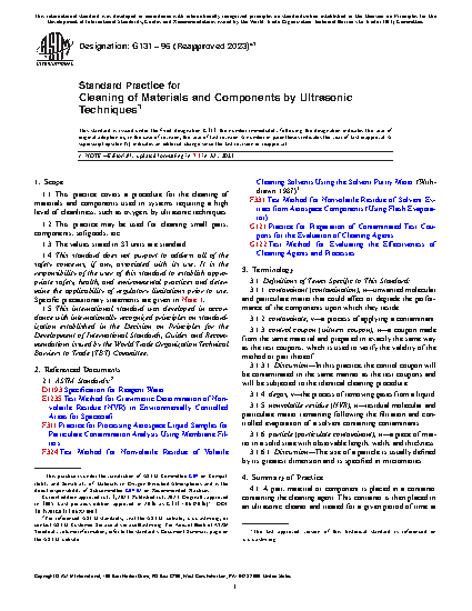 Standard Practice for Cleaning of Materials and Components by Ultrasonic Techniques