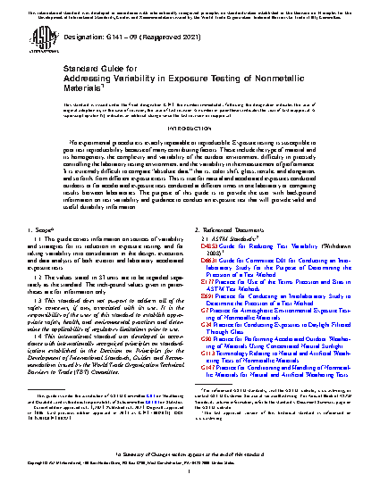 1.1 This guide covers information on sources of variability and strategies for its reduction in exposure testing, and for taking variability into consideration in the design, execution, and data analysis of both exterior and laboratory accelerated exposure tests.