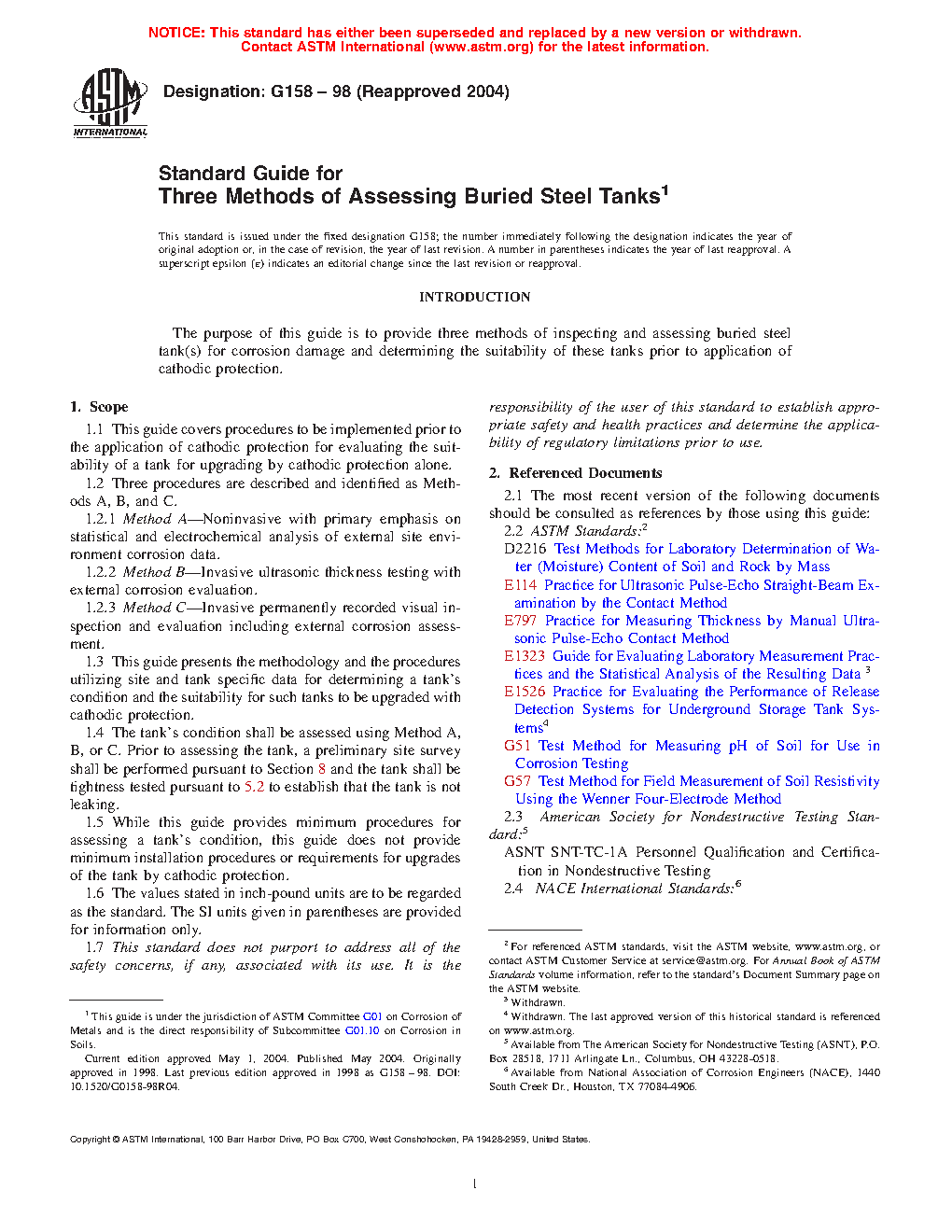 1.3 This guide presents the methodology and the procedures utilizing site and tank specific data for determining a tank's condition and the suitability for such tanks to be upgraded with cathodic protection.