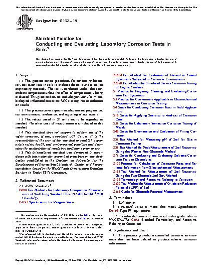 1.1 This practice covers procedures for conducting laboratory corrosion tests in soils to evaluate the potential for corrosion attack on engineering materials in soils. The test is conducted under laboratory ambient temperature unless the effect of temperature is being evaluated. This practice does not include provisions for microbiological influenced corrosion (MIC) testing, nor its influence on results.
