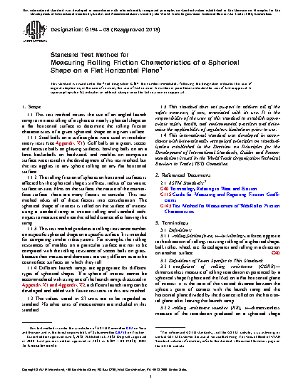 1.1 This test method covers the use of an angled launch ramp to initiate rolling of a sphere or nearly spherical shape on a flat horizontal surface to determine the rolling friction characteristics of a given spherical shape on a given surface.