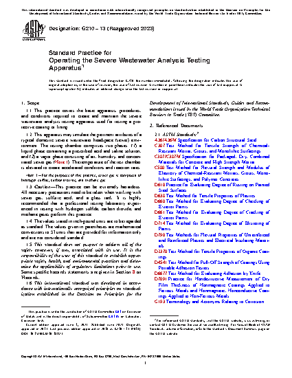 1.1 This practice covers the basic apparatus, procedures, and conditions required to create and maintain the severe wastewater analysis testing apparatus used for testing a protective coating or lining.