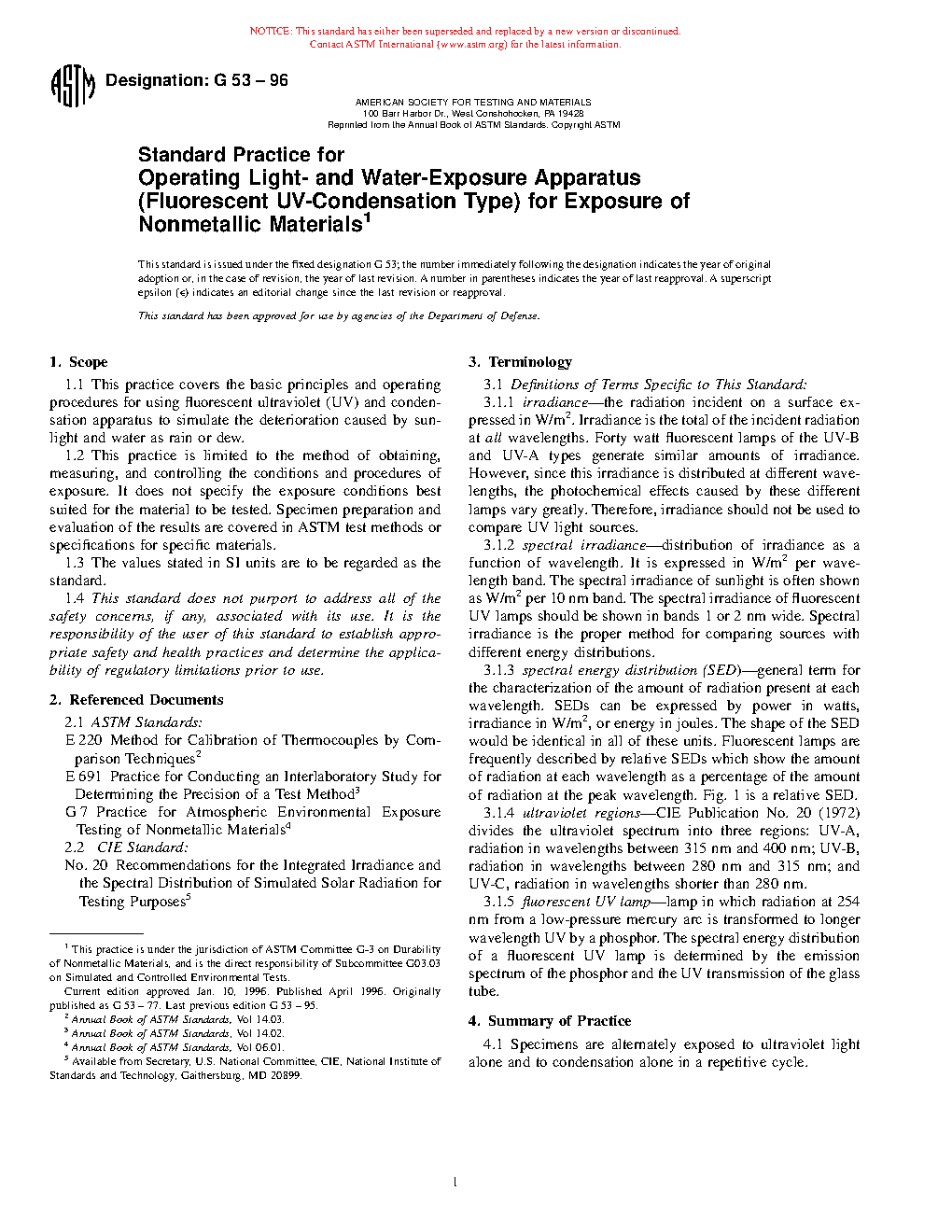 1.1 This practice covers the basic principles and operating procedures for using fluorescent ultraviolet (UV) and condensation apparatus to simulate the deterioration caused by sunlight and water as rain or dew.