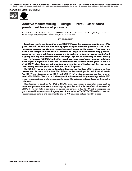 This document specifies the features of laser-based powder bed fusion of polymers (LB-PBF-P) and provides detailed design recommendations.