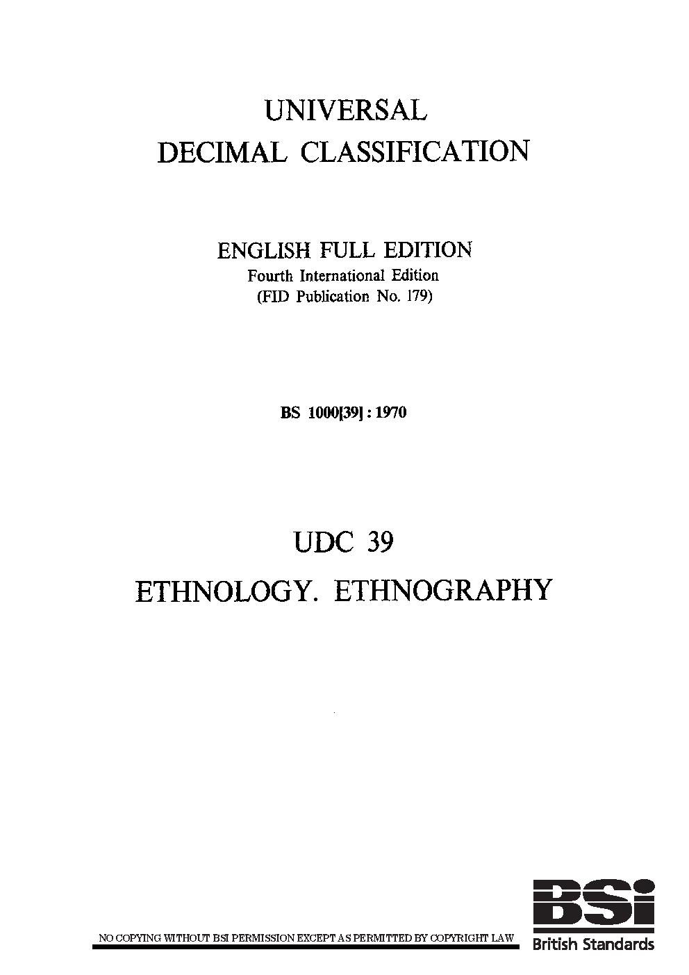 Universal Decimal Classification. English full edition Ethnology. Ethnography