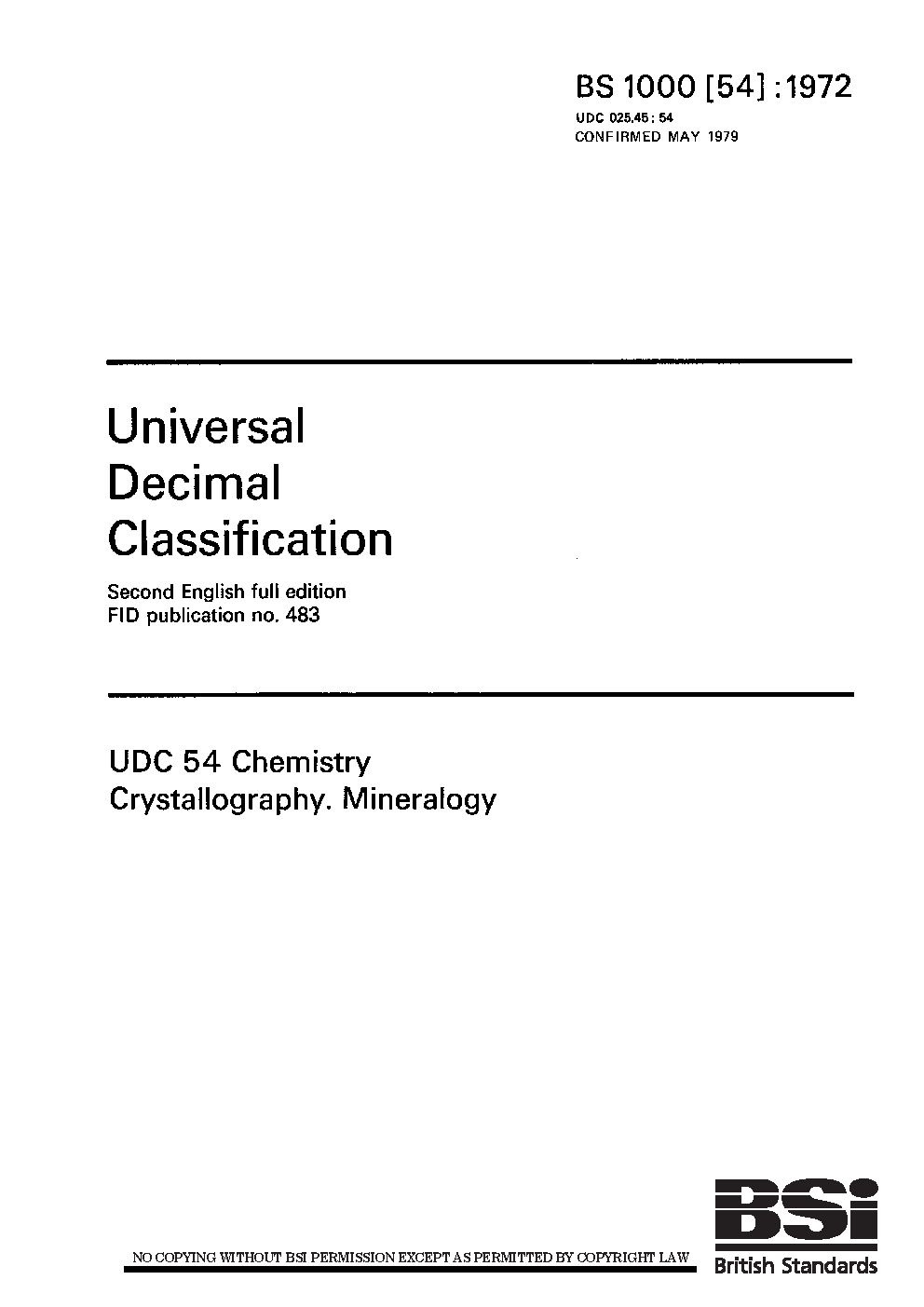 Universal Decimal Classification. English full edition Chemistry. Crystallography. Mineralogy