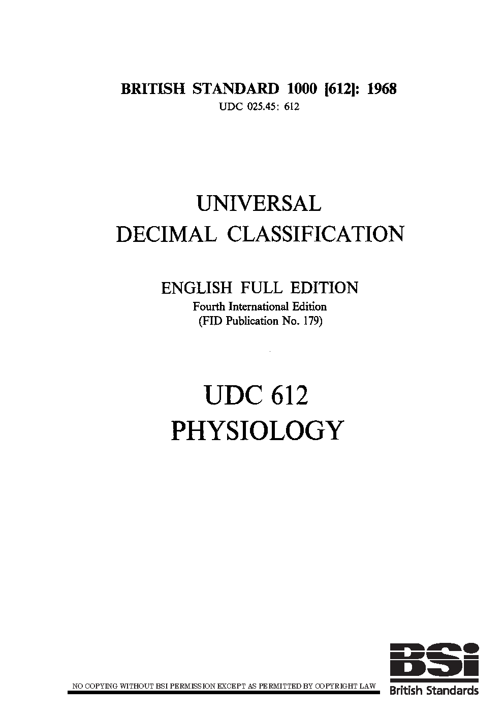 Universal Decimal Classification. English full edition Physiology