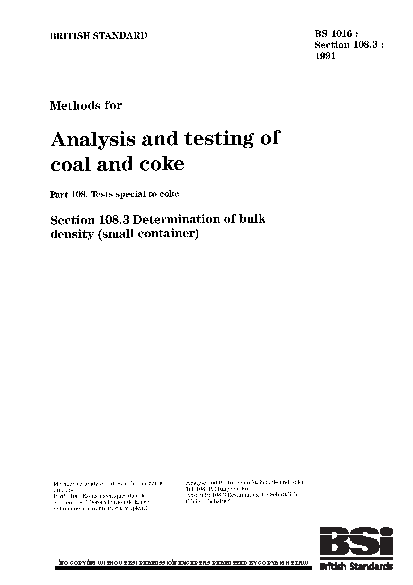 Methods for analysis and testing of coal coke. Tests special to coke Determination bulk density (small container)