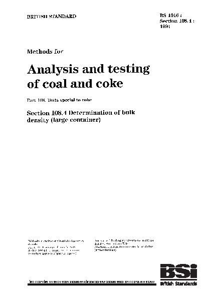 Methods for analysis and testing of coal coke. Tests special to coke Determination bulk density (large container)