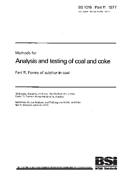 Methods for analysis and testing of coal and coke. Forms of sulphur in coal