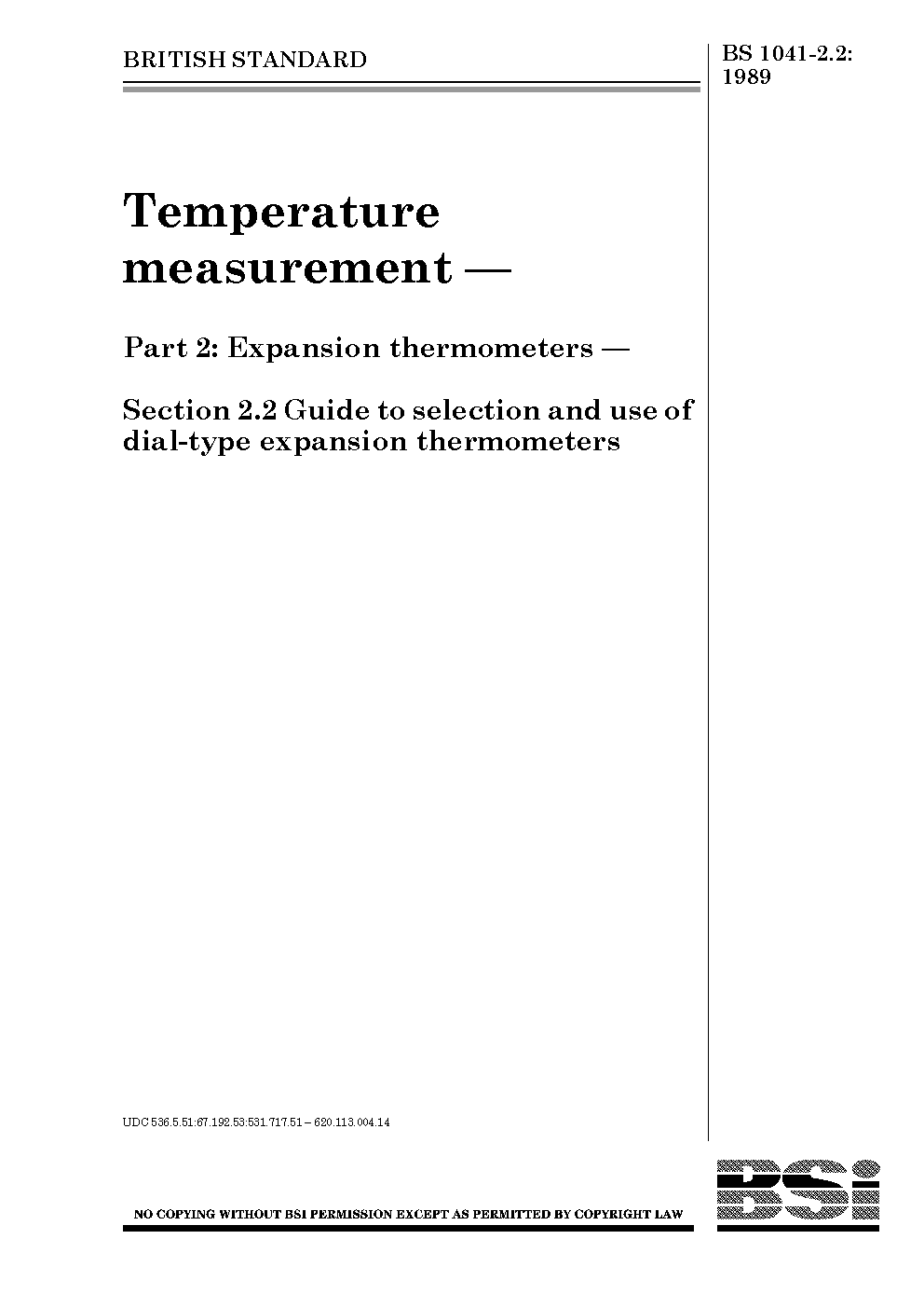 Code for temperature measurement. Expansion thermometers Guide to selection and use of dial-type expansion
