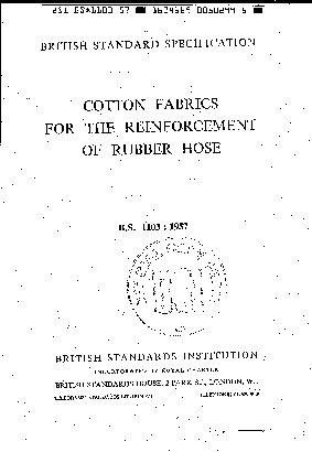 Woven fabrics;Marking;Cloth;Breaking load;Flexible pipes;Textile products;Mass;Cotton;Elongation;Synthetic rubber;Cotton fibres;Natural rubber;Reinforcing materials