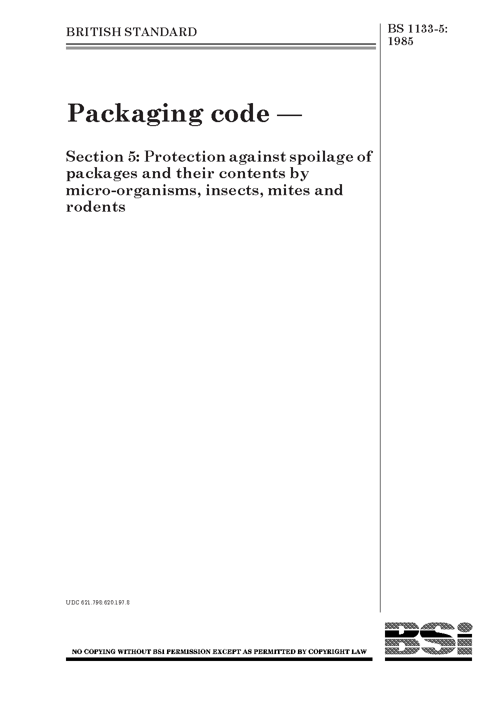 Packaging code. Protection against spoilage of packages and their contents by micro organisms, insects, mites and rodents