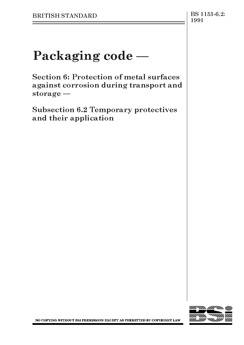 Packaging code. Protection of metal surfaces against corrosion during transport and storage Temporary protectives their application