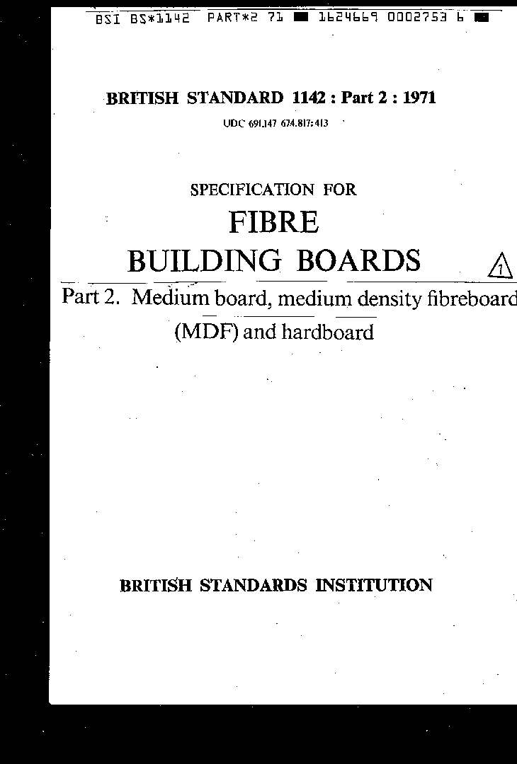 Specification for fibre building boards Medium board, medium density fibreboard (MDF) and hardboard