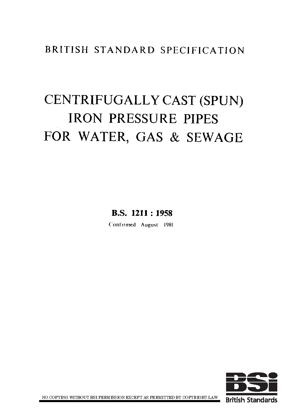 Centrifugally cast (spun) iron pipes for gas water and sewage.