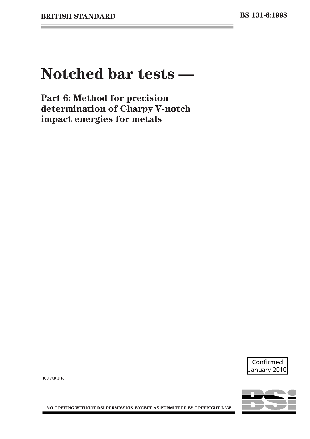 Notched bar tests Method for precision determination of Charpy V-notch impact energies metals