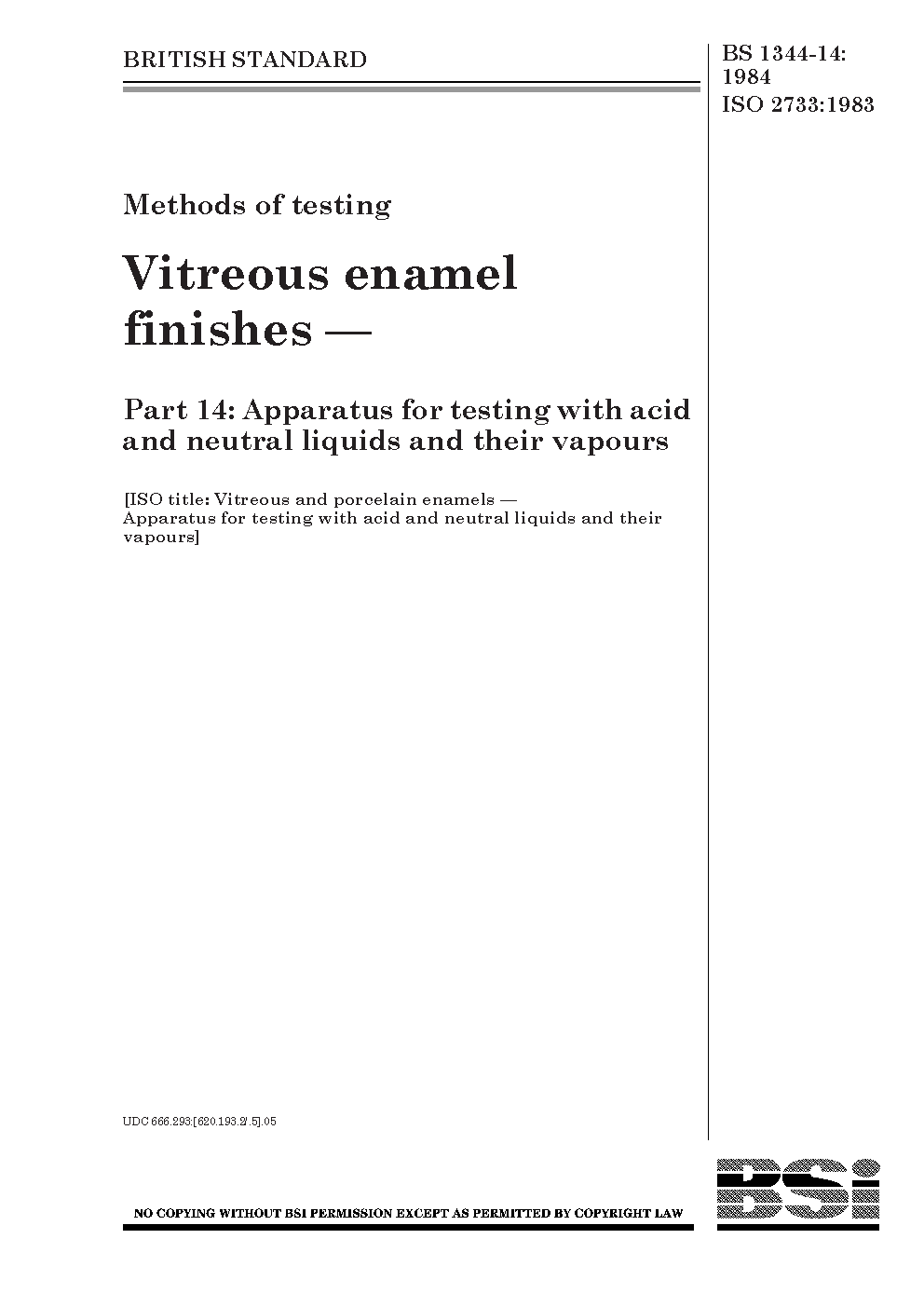 Methods of testing vitreous enamel finishes Apparatus for with acid and neutral liquids their vapours