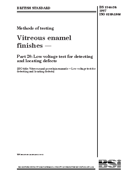 Methods of testing vitreous enamel finishes Low voltage test for detecting and locating defects