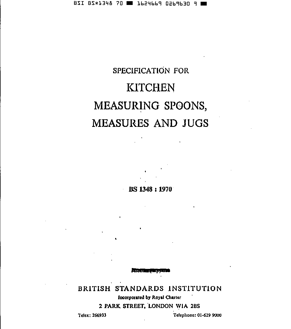 Specification for kitchen measuring spoons, measures and jugs