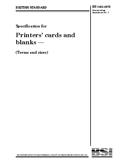 Specification for printers' cards and blanks (terms and sizes)