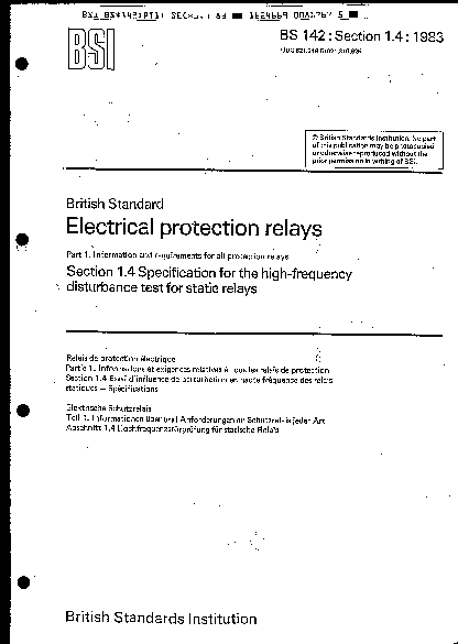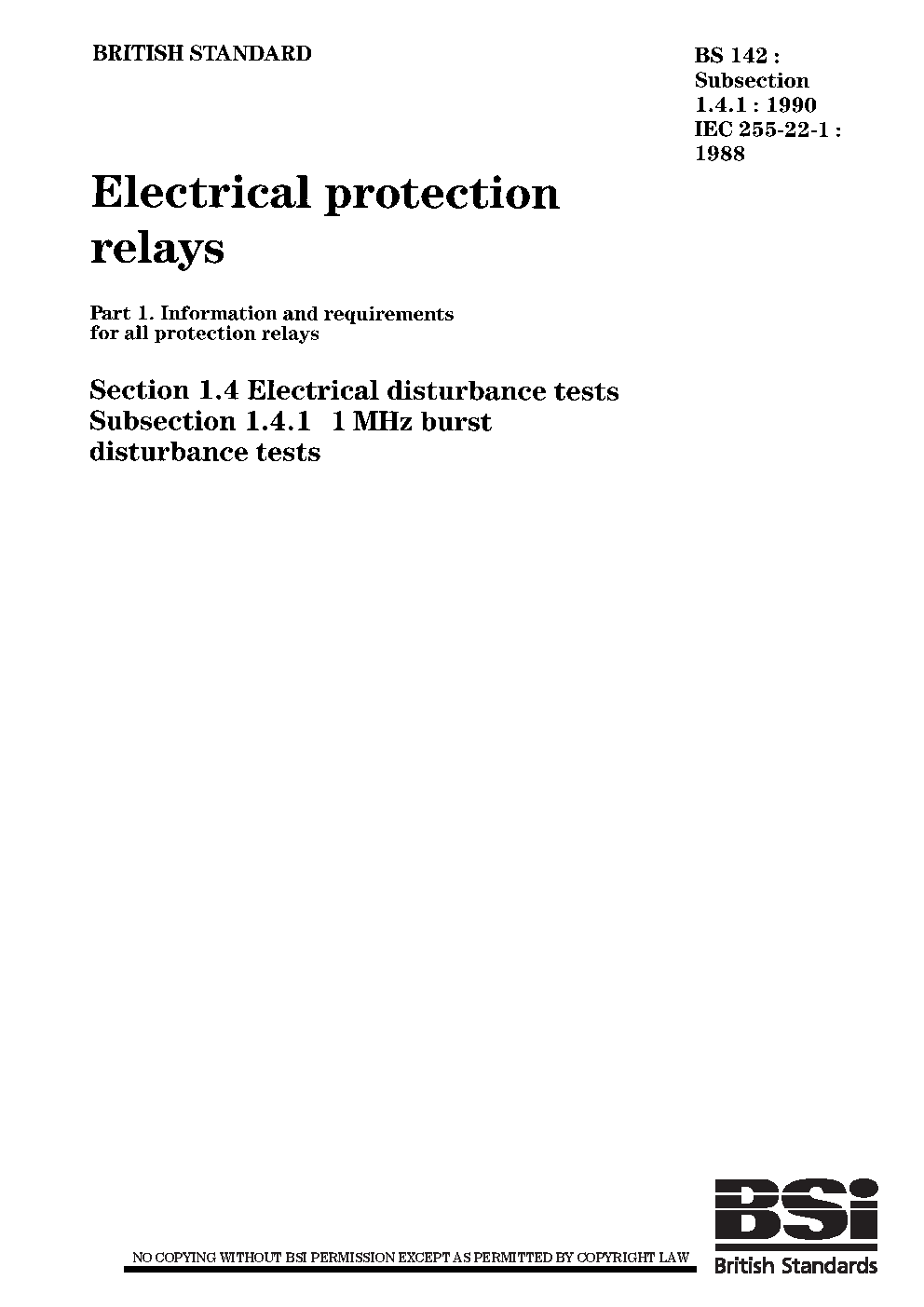 Electrical protection relays. Information and requirements for all Specification electrical disturbance tests 1 MHz burst