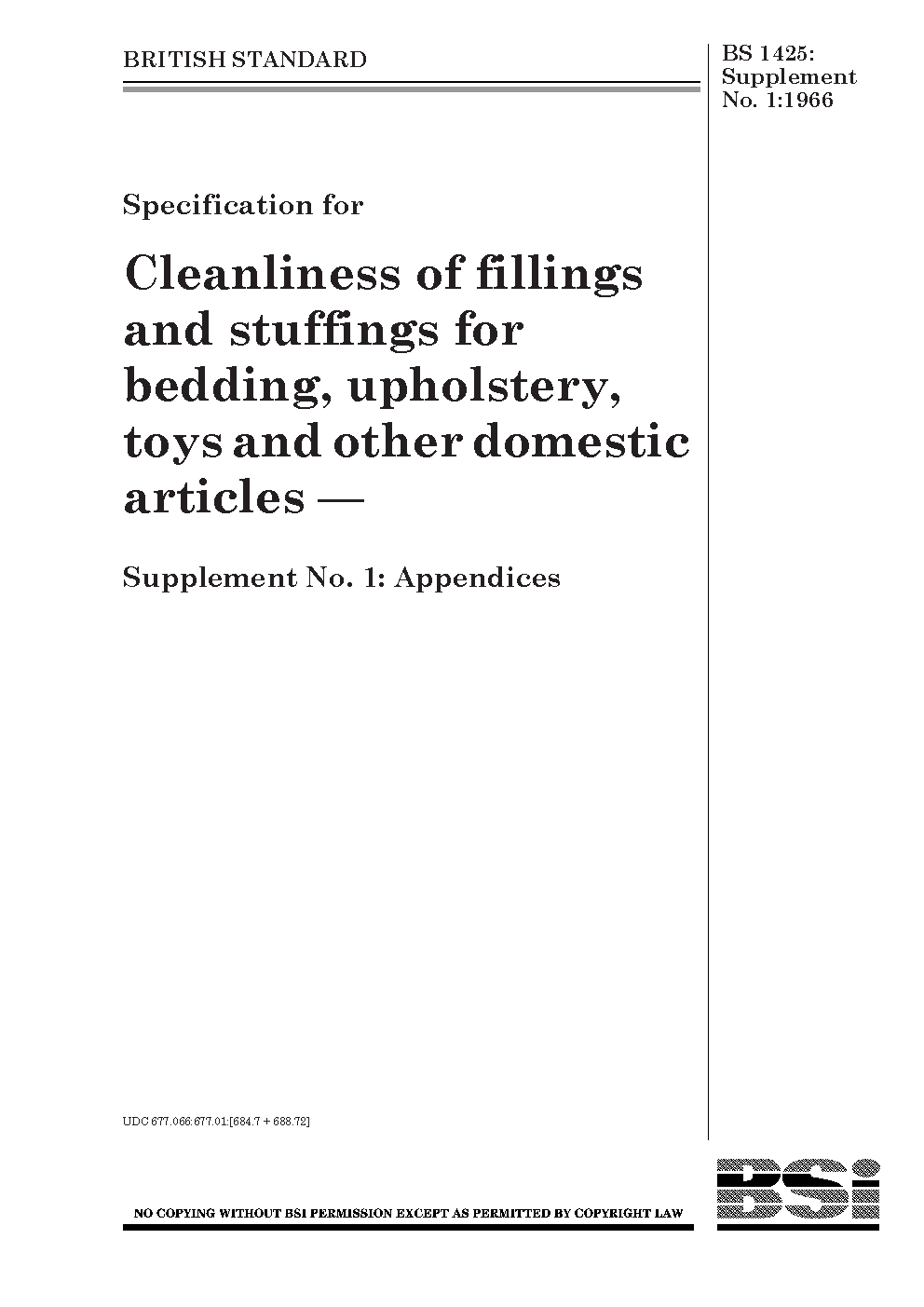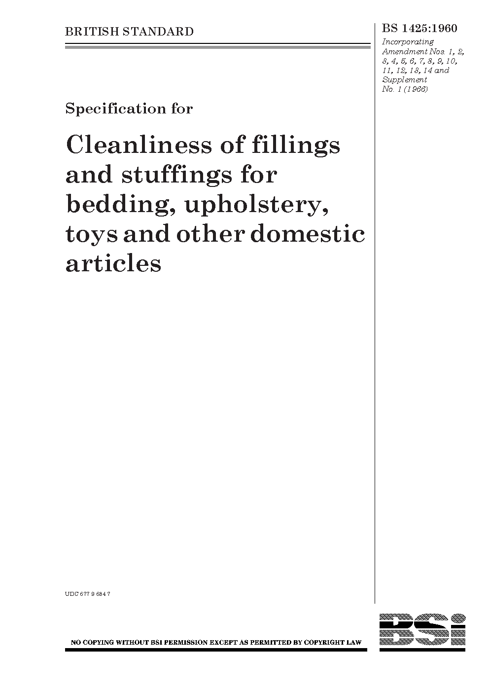 Specification for cleanliness of fillings and stuffings for bedding etc