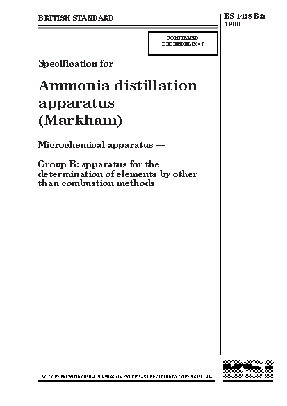 Microchemical analysis. Apparatus for the determination of elements by other than combustion methods Specification ammonia distillation apparatus (Markham)
