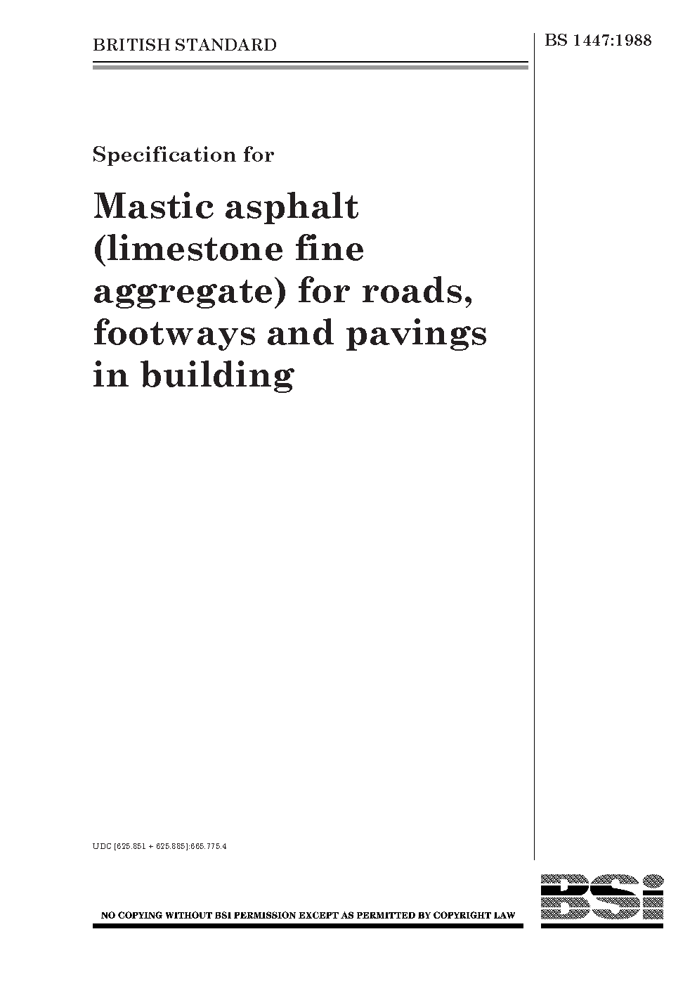 Specification for mastic asphalt (limestone fine aggregate) for roads and footways