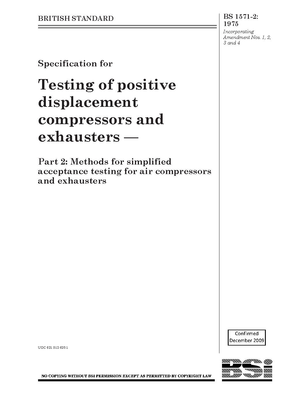 Specification for testing of positive displacement compressors and exhausters Methods simplified acceptance air