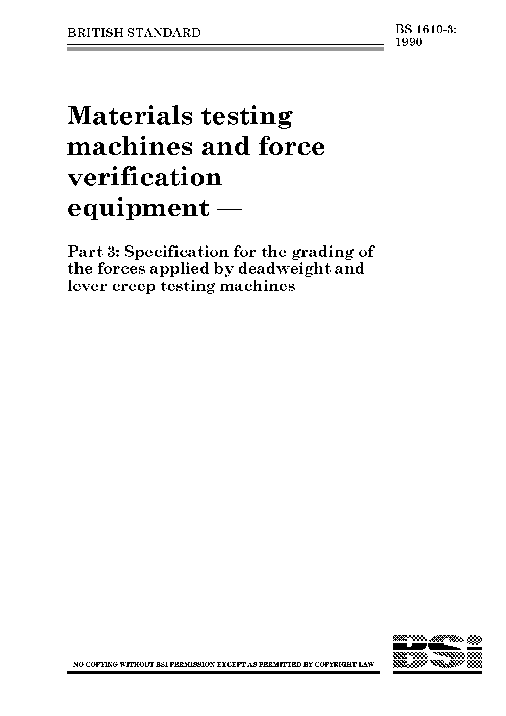 Materials testing machines and force verification equipment Specification for the grading of forces applied by deadweight lever creep