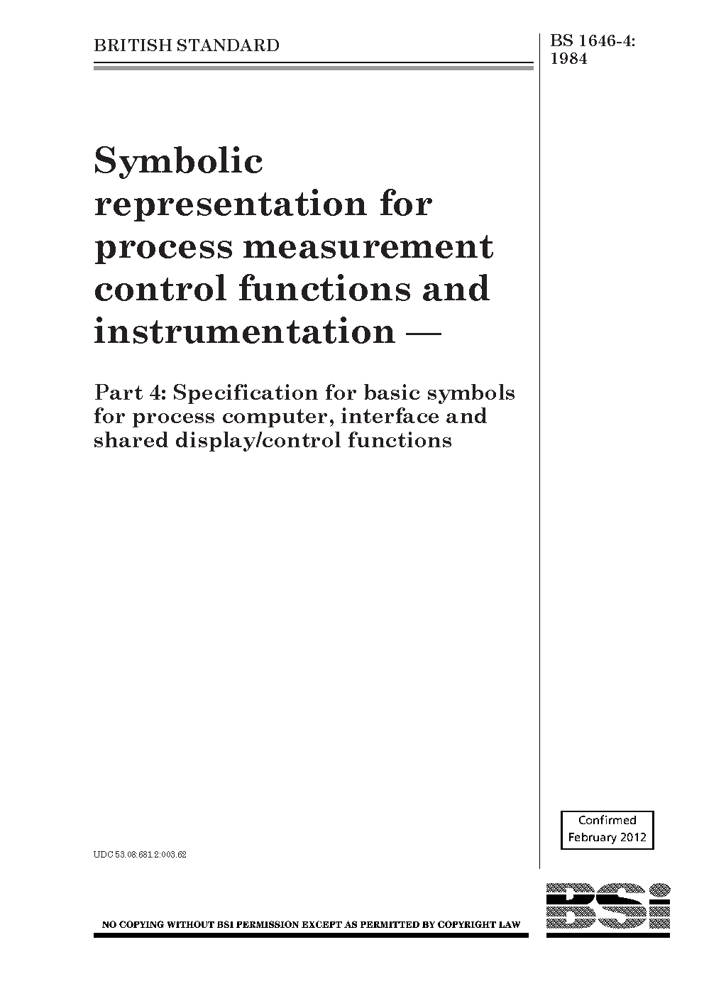 Symbolic representation for process measurement control functions and instrumentation Specification basic symbols computer, interface shared display/control
