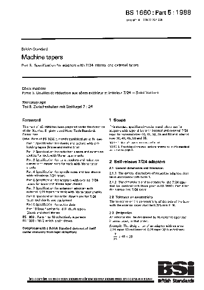 Machine tapers Specification for reduction sleeves with external and internal 7/24