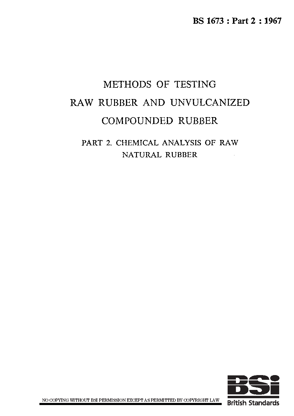 Methods of test for raw rubber and unvulcanized compounded Chemical analysis natural