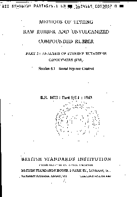 Methods of testing raw rubber and unvulcanized compounded rubber. Analysis styrene butadiene copolymers (SBR) Bound content