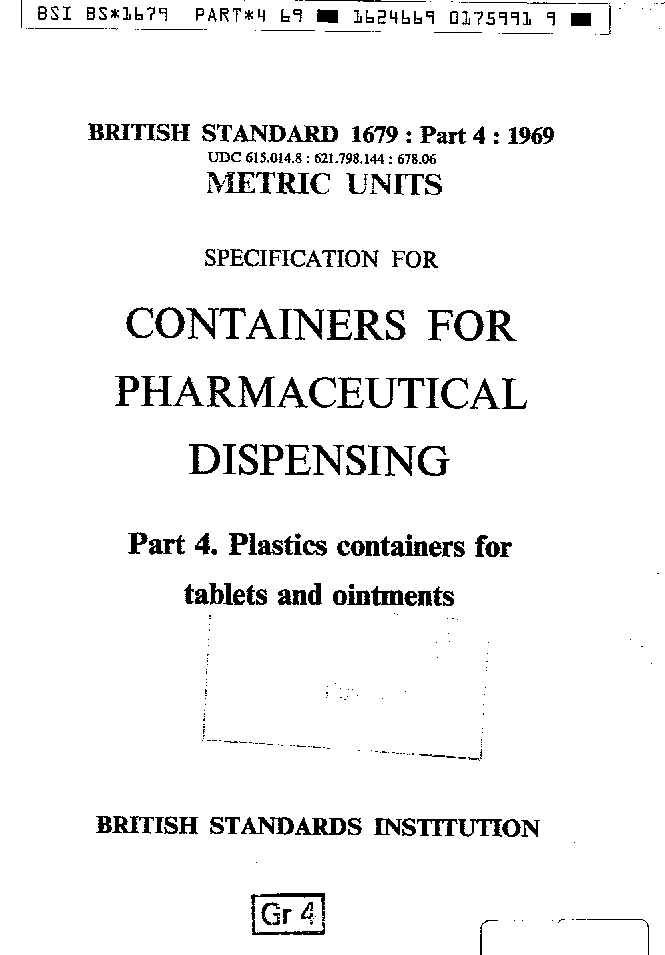 Specification for containers pharmaceutical dispensing Plastics tablets and ointments